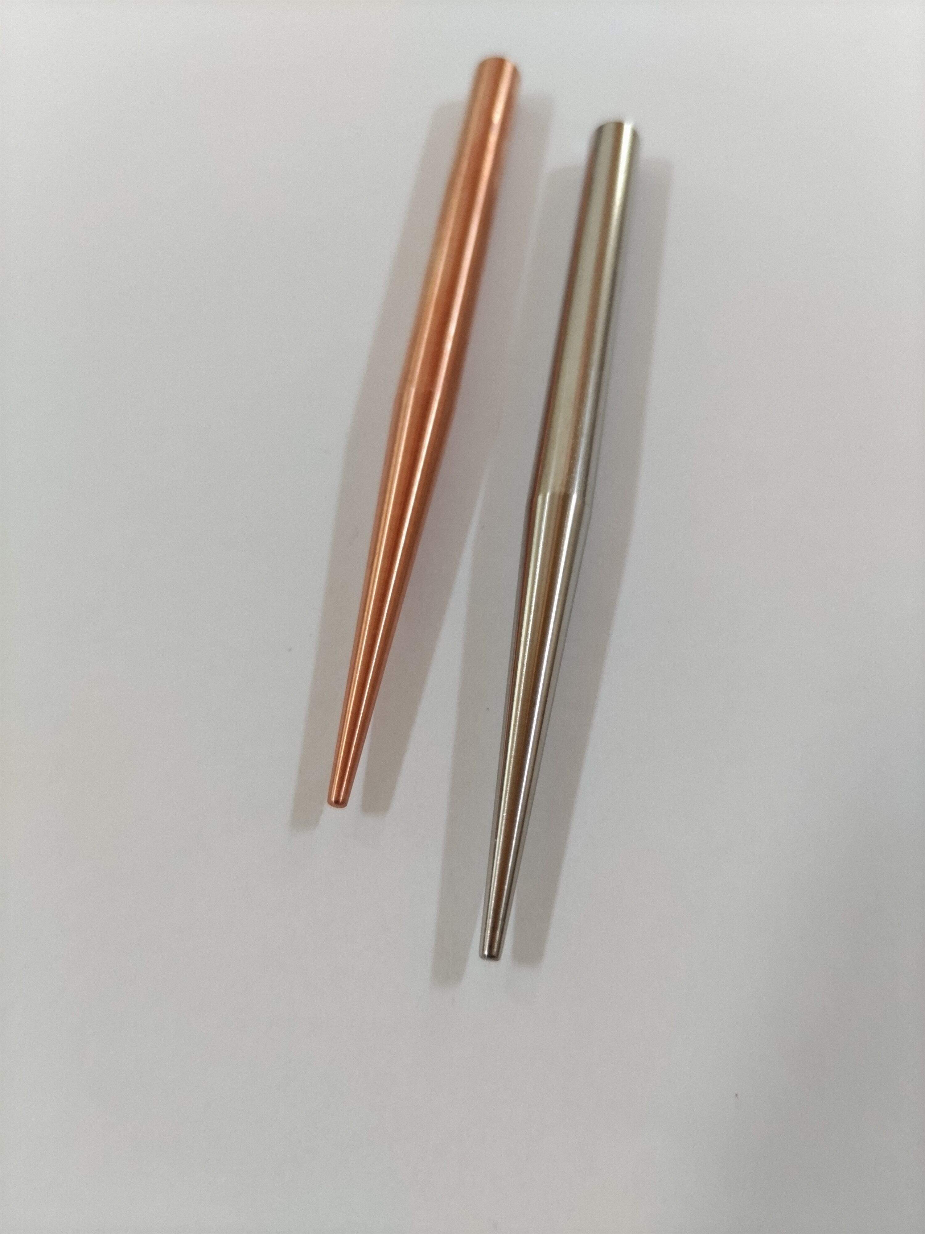 現代の標準的なていしんは銅、アルミ製ですがこちらは銅、鉄の組み合わせ。長さ9cm、太さ6mm。